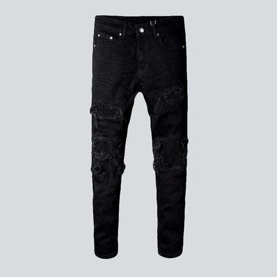 Vintage distressed men's moto jeans